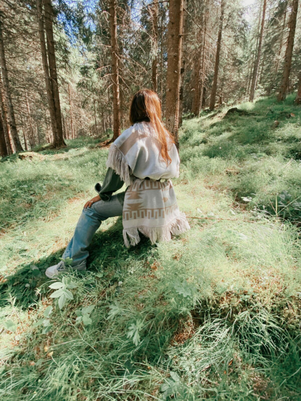 Giacca Militare Le Guerresco, con Gilet rimovibile Azzurro, Bianco e Beige in fantasia Azteca. Giacca vintage militare rivisitata, con Gilet