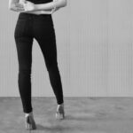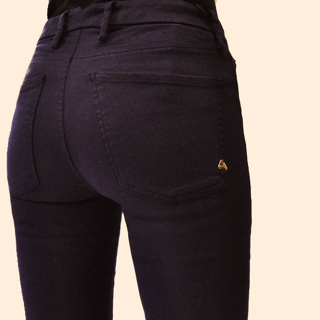 Il pantalone della Cycle è fatto con il materiale jeans elasticizzato, morbido al tatto, è confortevole indossarlo. La vita è più alta dietro e ha i passanti per la cintura. Si chiude con zip e bottone, due tasche posteriori e due tasche frontali.