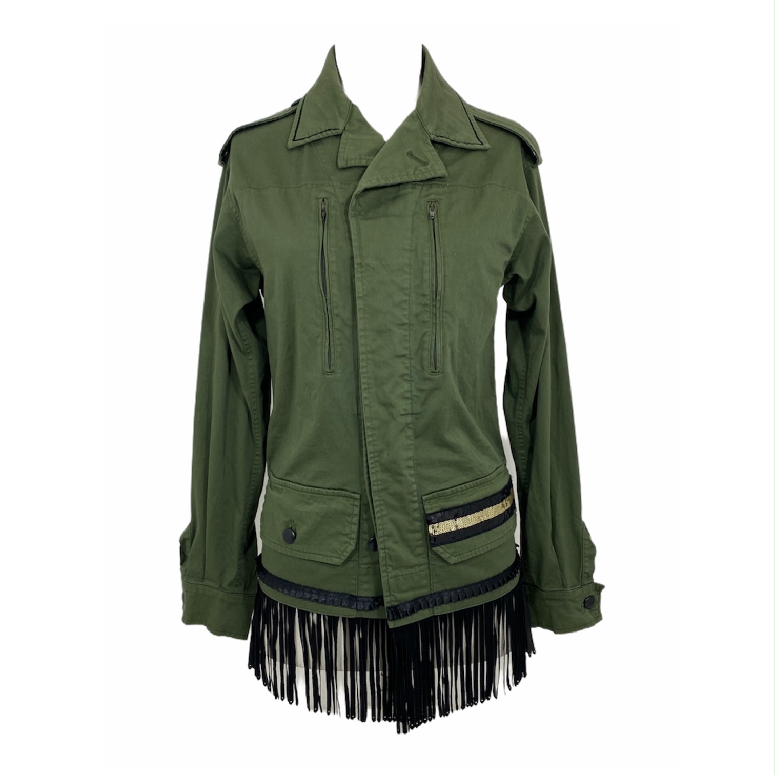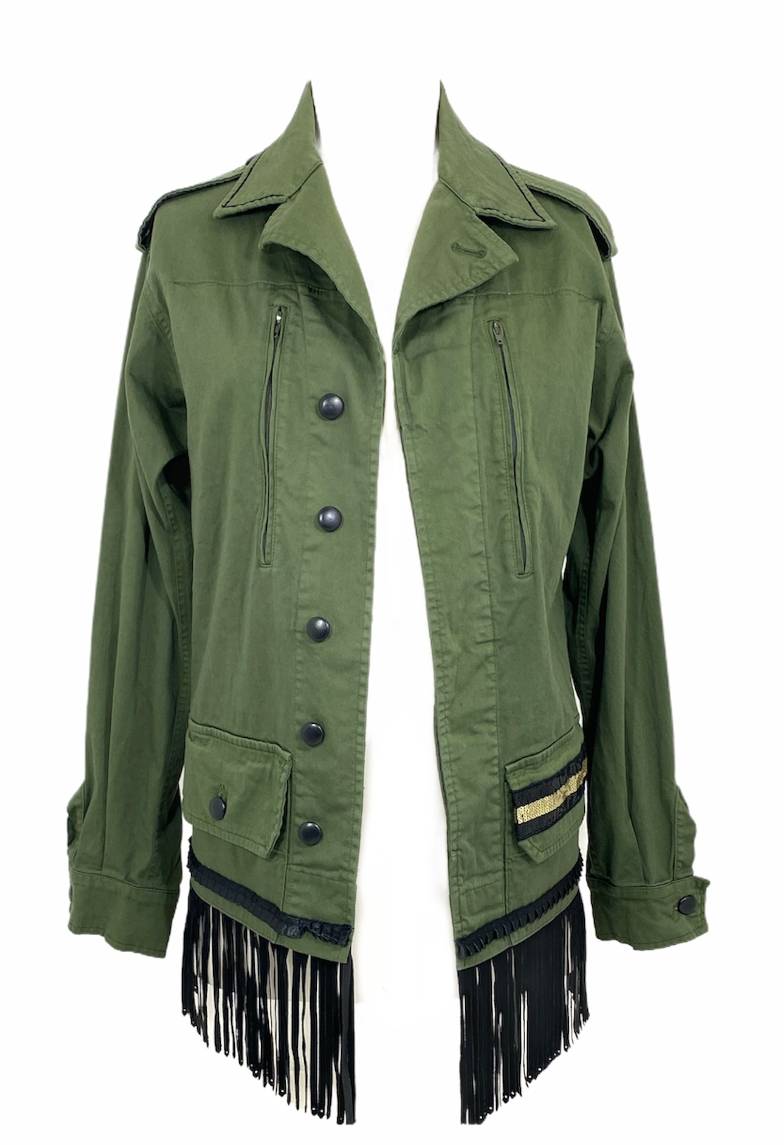 Home Capospalla Giacche History Repeats – Giacca Military Green con Frange Nere