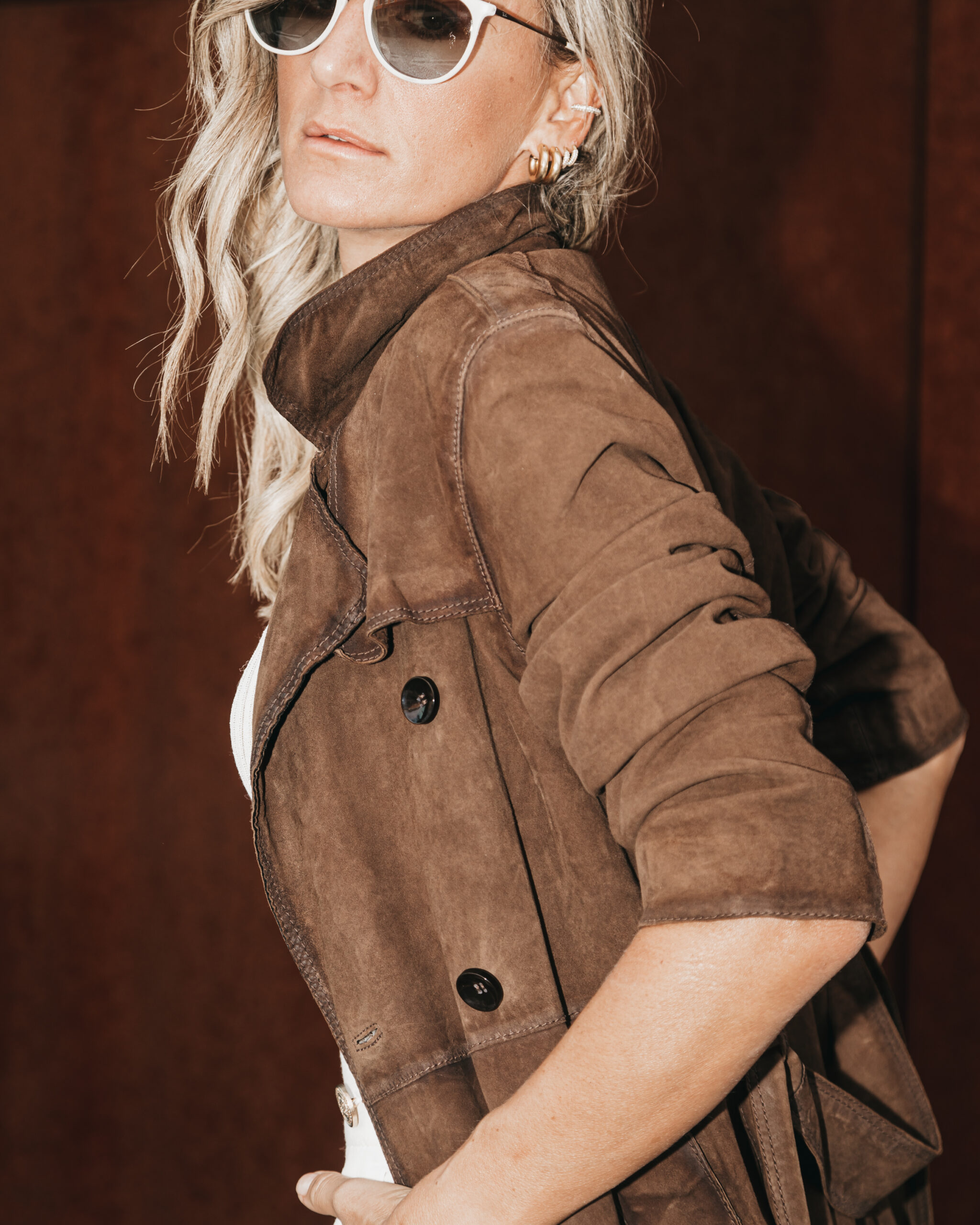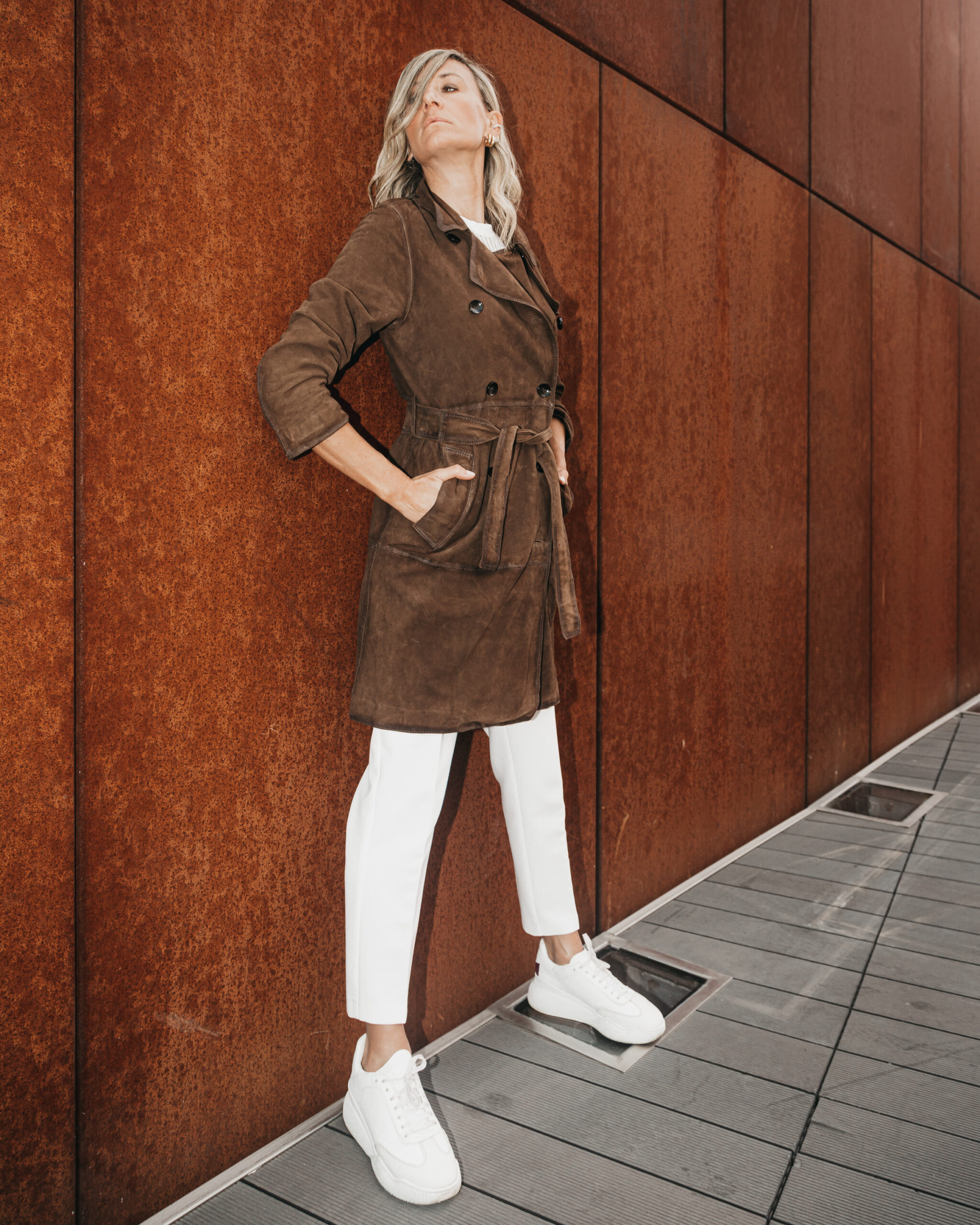 Il nostro trench in camoscio invecchiato marrone è il capo che non può mancare nel tuo guardaroba. Con cintura in vita, due tasche laterali e lunghezza sopra il ginocchio, questo trench ti farà sentire elegante e alla moda in ogni occasione. Realizzato con pelle di camoscio morbida e confortevole, questo capo ti avvolgerà in un abbraccio di stile e comfort. Perfetto per le mezze stagioni e le serate più fresche, il nostro trench in camoscio invecchiato è il must-have della stagione.