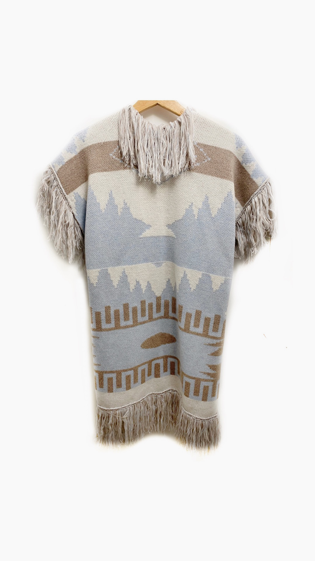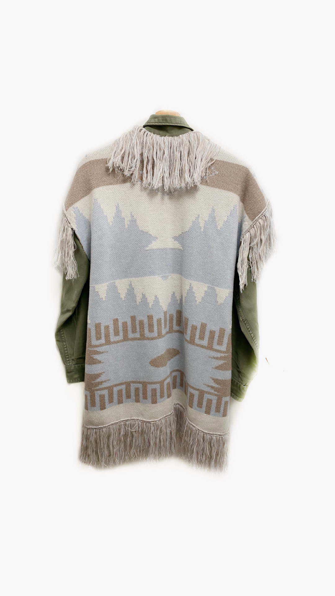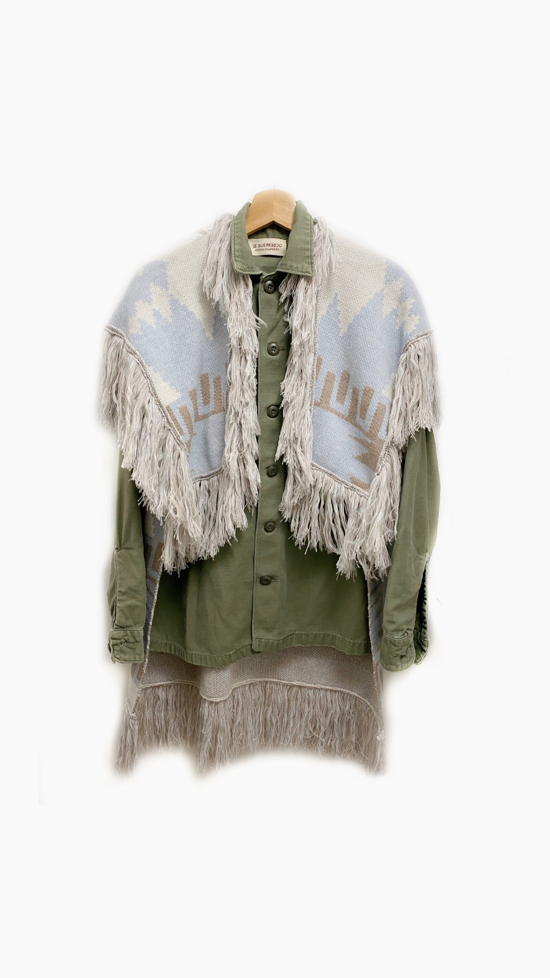 Giacca Militare Le Guerresco, con Gilet rimovibile Azzurro, Bianco e Beige in fantasia Azteca.