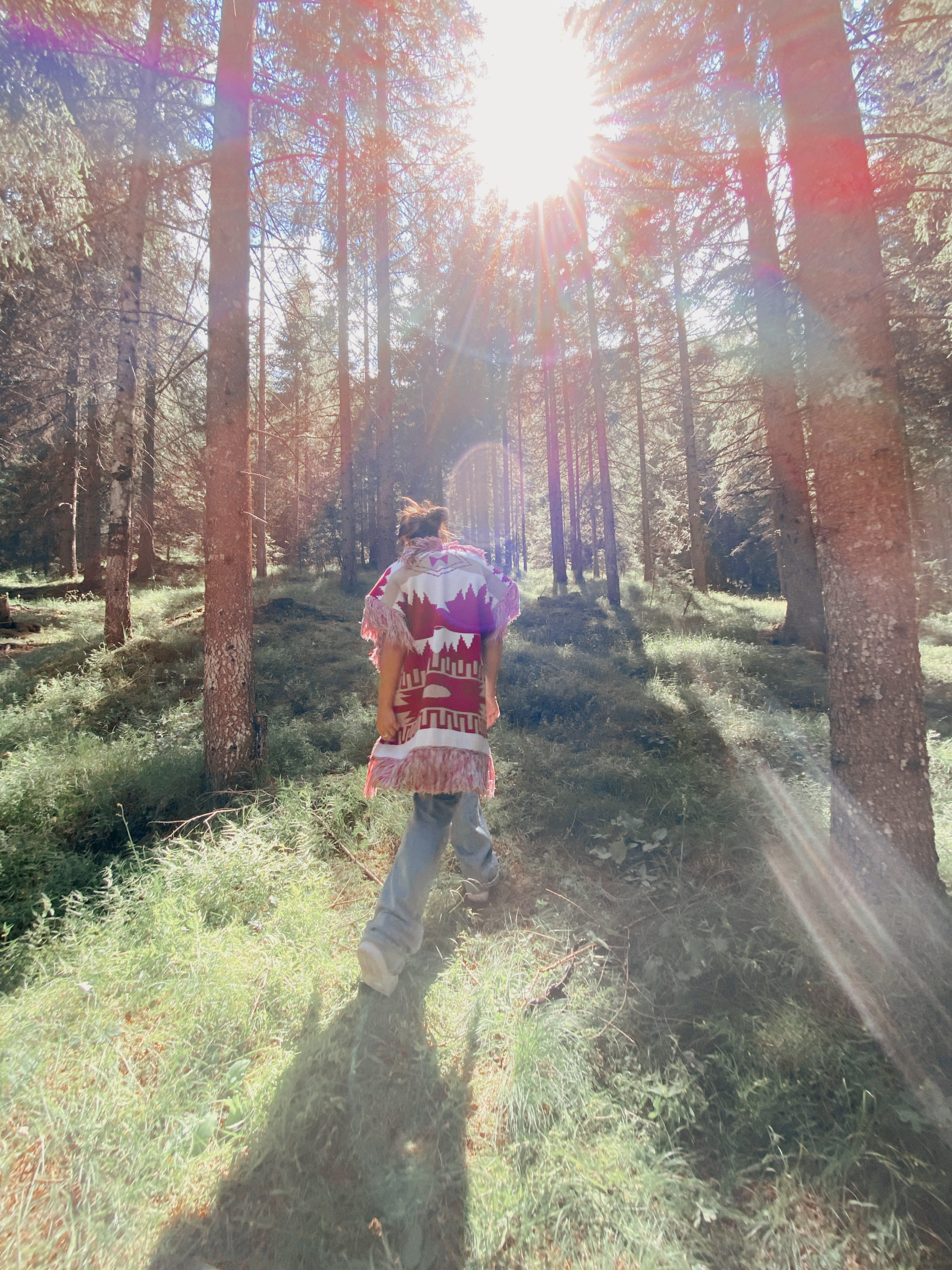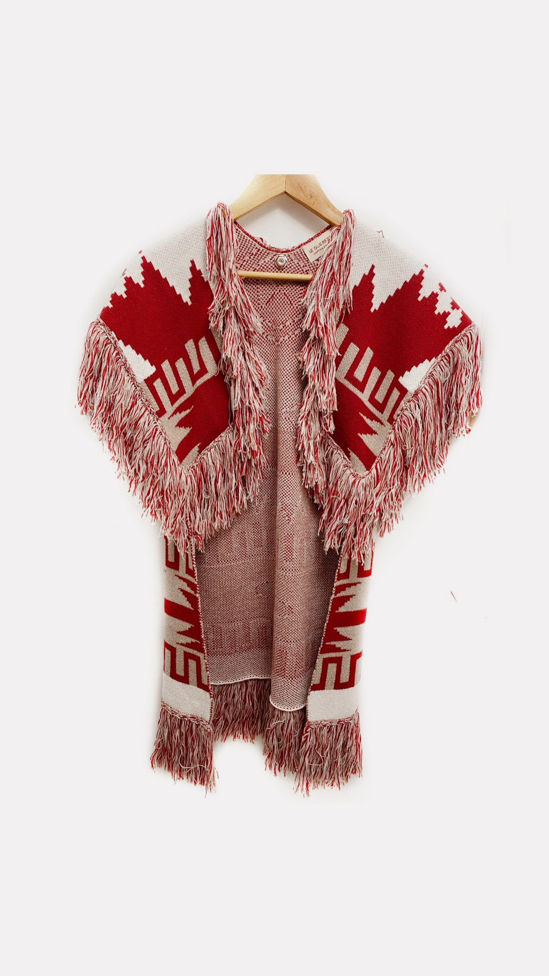 Giacca Militare Le Guerresco, con Gilet rimovibile Rosso, Bianco e Beige in fantasia Azteca.