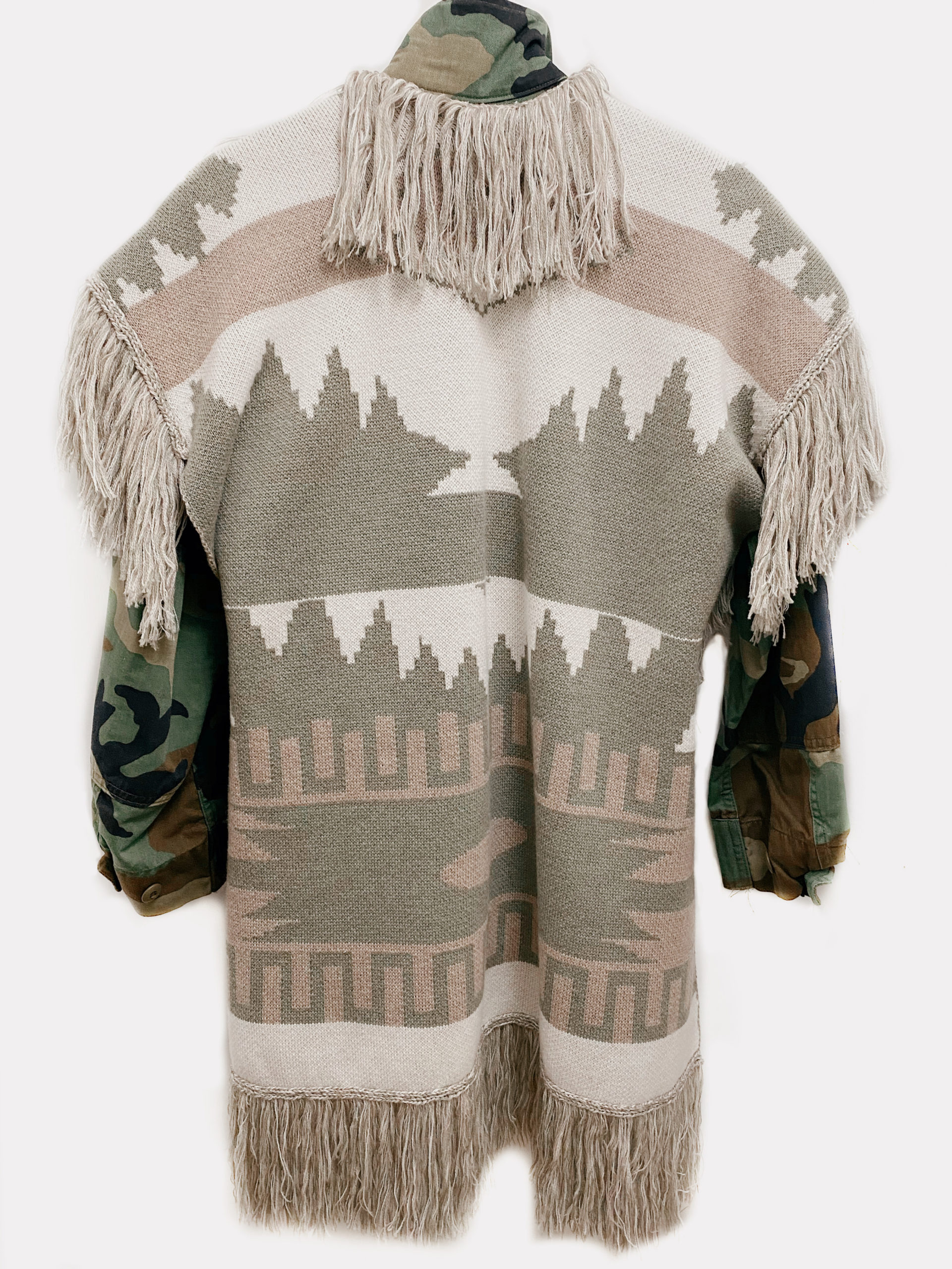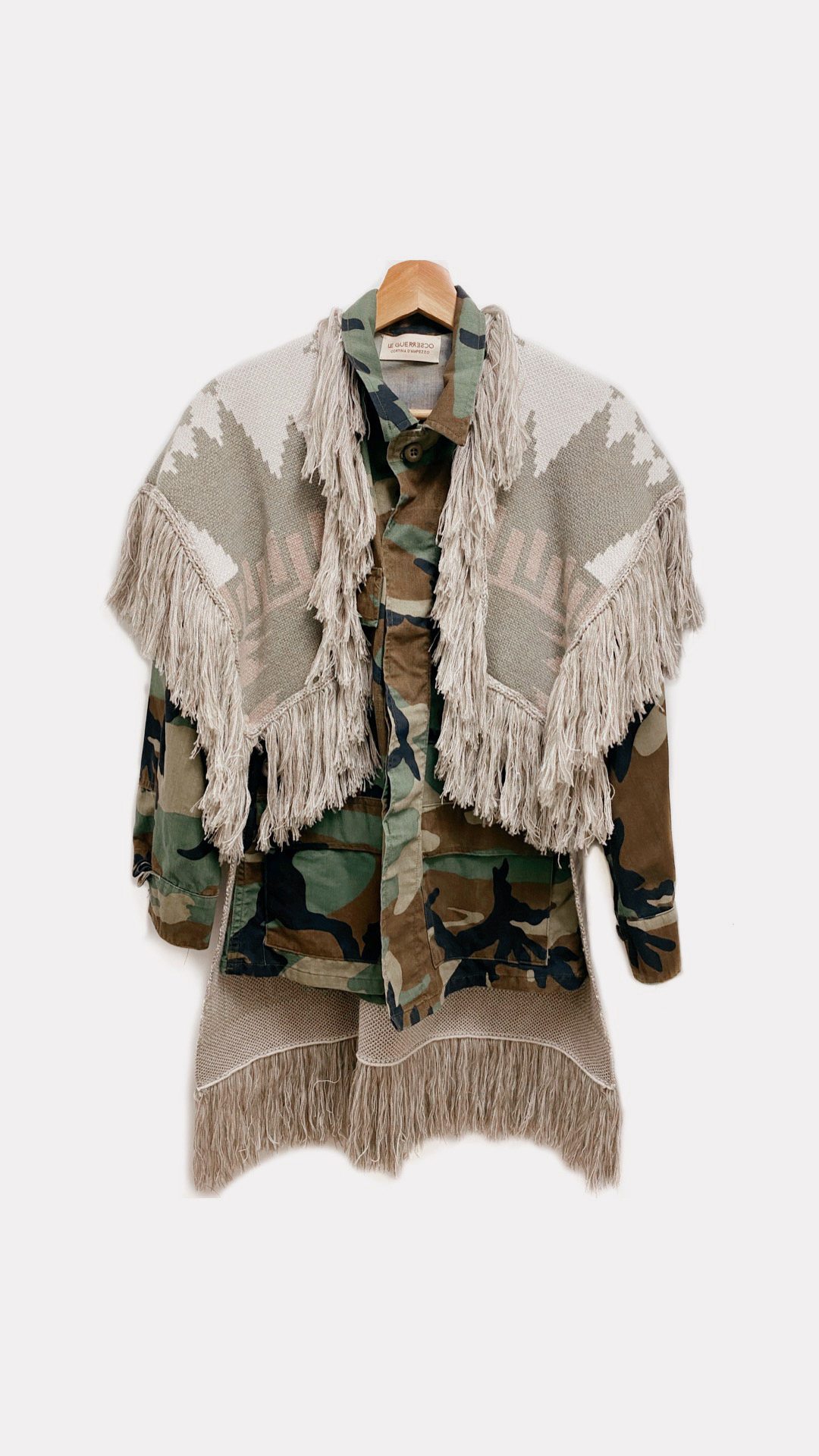 Giacca Militare Le Guerresco, con Gilet rimovibile Verde, Bianco e Beige in fantasia Azteca.