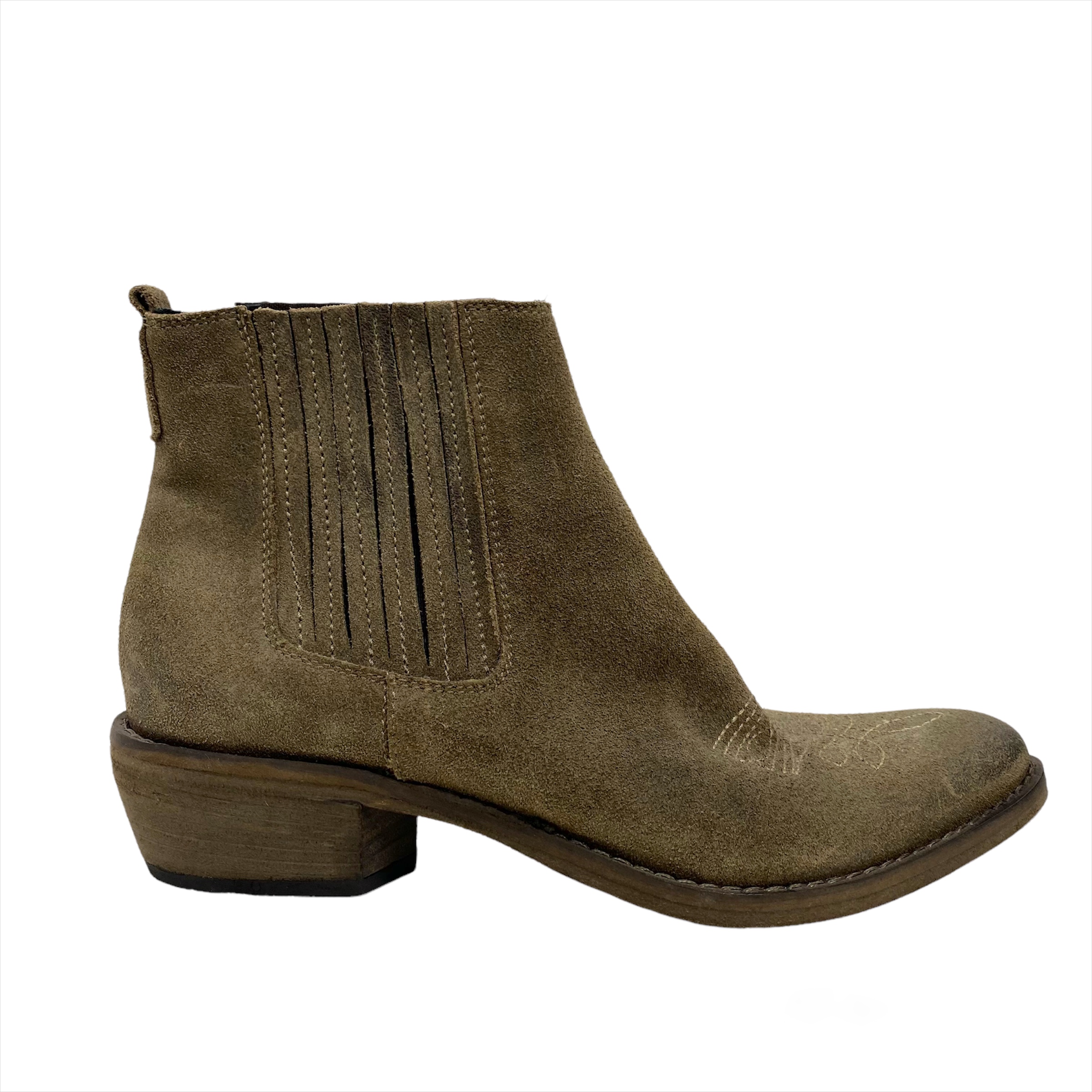 Gli stivaletti Le Guerresco sono in camoscio di alta qualitĆ , con un design texano rivisitato che lo rende un capo unico e di tendenza. Il colore muschio ĆØ molto versatile e si adatta perfettamente a diverse combinazioni di outfit.