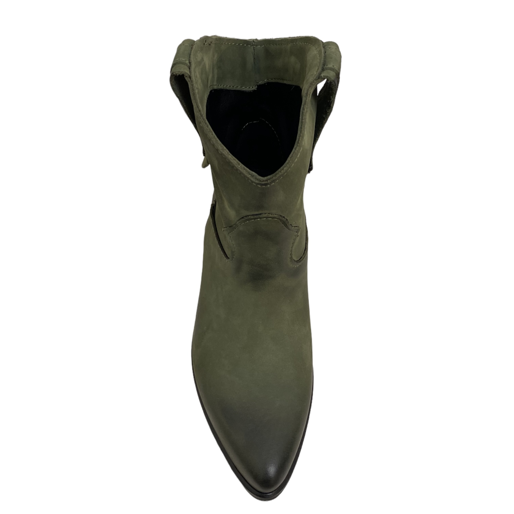 I nostri stivaletti Le Guerresco sono realizzati in pellame invecchiato color verde con un design in stile camperos. Il loro morbido e affusolato design a punta, insieme al tacco di 4 cm, conferisce un look sofisticato e al tempo stesso comodo. Questi stivaletti sono stati fatti artigianalmente in Italia, utilizzando solo i migliori materiali e le tecniche tradizionali di lavorazione della pelle. La loro vestibilitĆ ĆØ molto comoda, garantendo il massimo comfort durante l’uso. Aggiungi un tocco di eleganza ai tuoi outfit con i nostri stivaletti Le Guerresco.