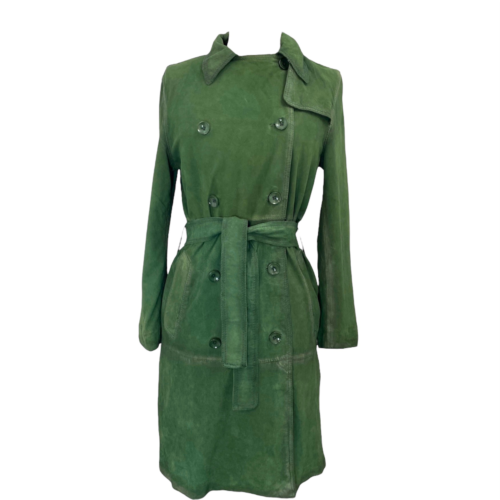 Scopri il nostro elegante trench color verde in camoscio invecchiato Le GUerresco, il capo perfetto per completare il tuo look con stile e sofisticazione.
