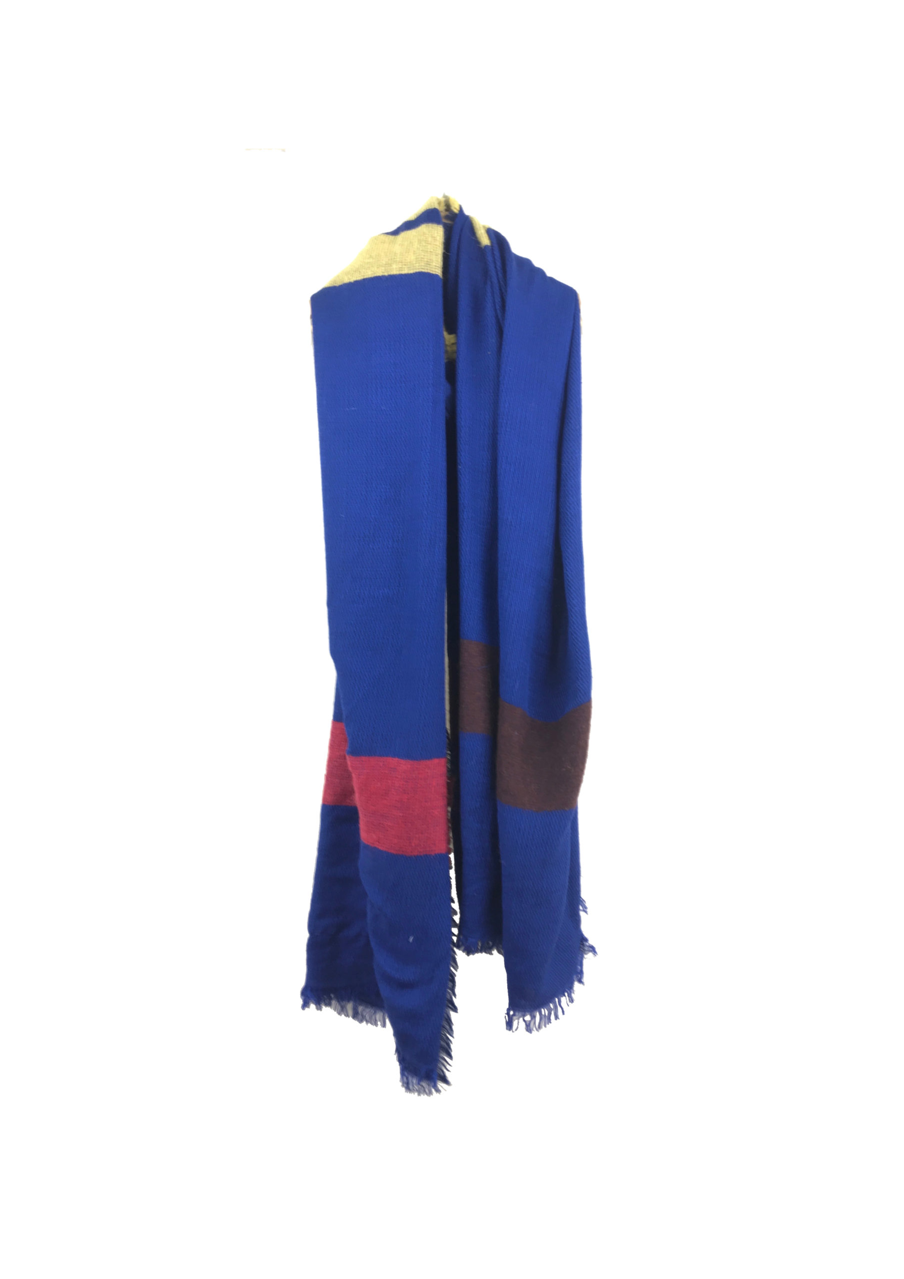Sciarpa di Lovat & Green blu elettrico con righe alte giallo marrone e rosso