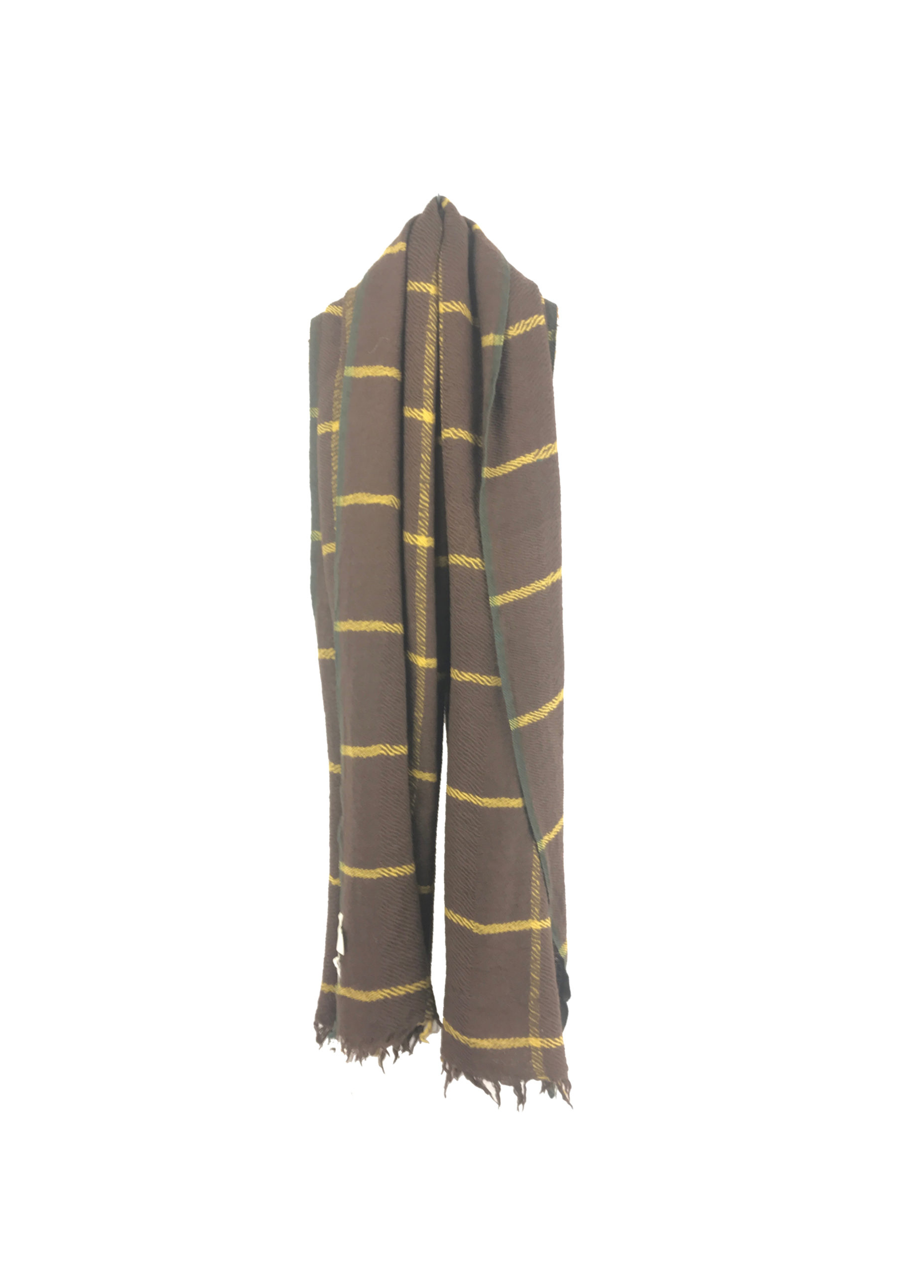 Sciarpa di Lovat & Green in check marrone con le linee color giallo in lana
