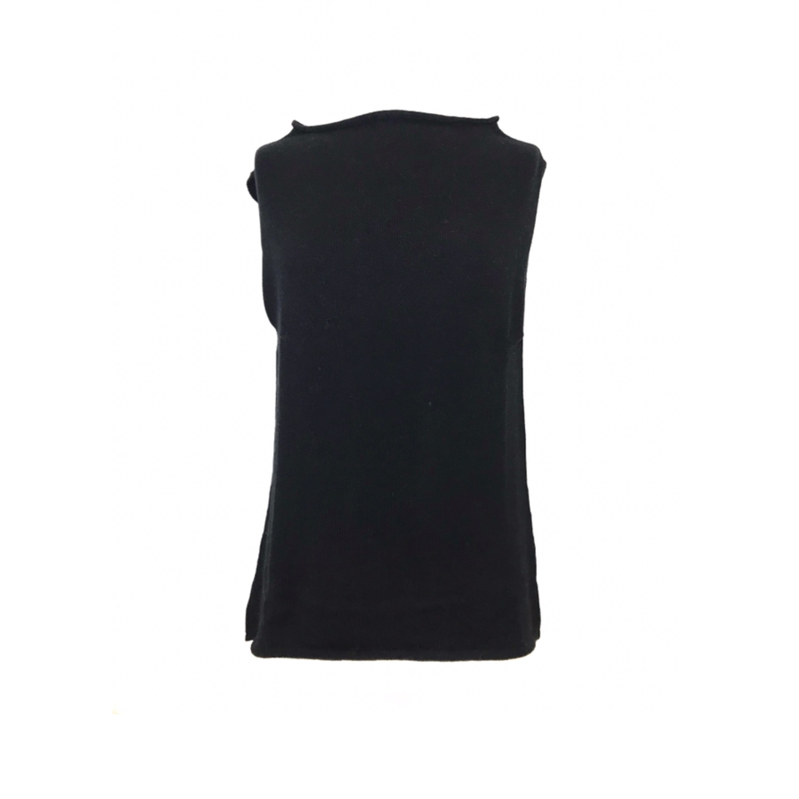 Maglia Ingrid ponchetto cashmere senza maniche e scollo a barchetta con il dietro leggermente più lungo del davanti