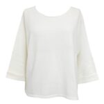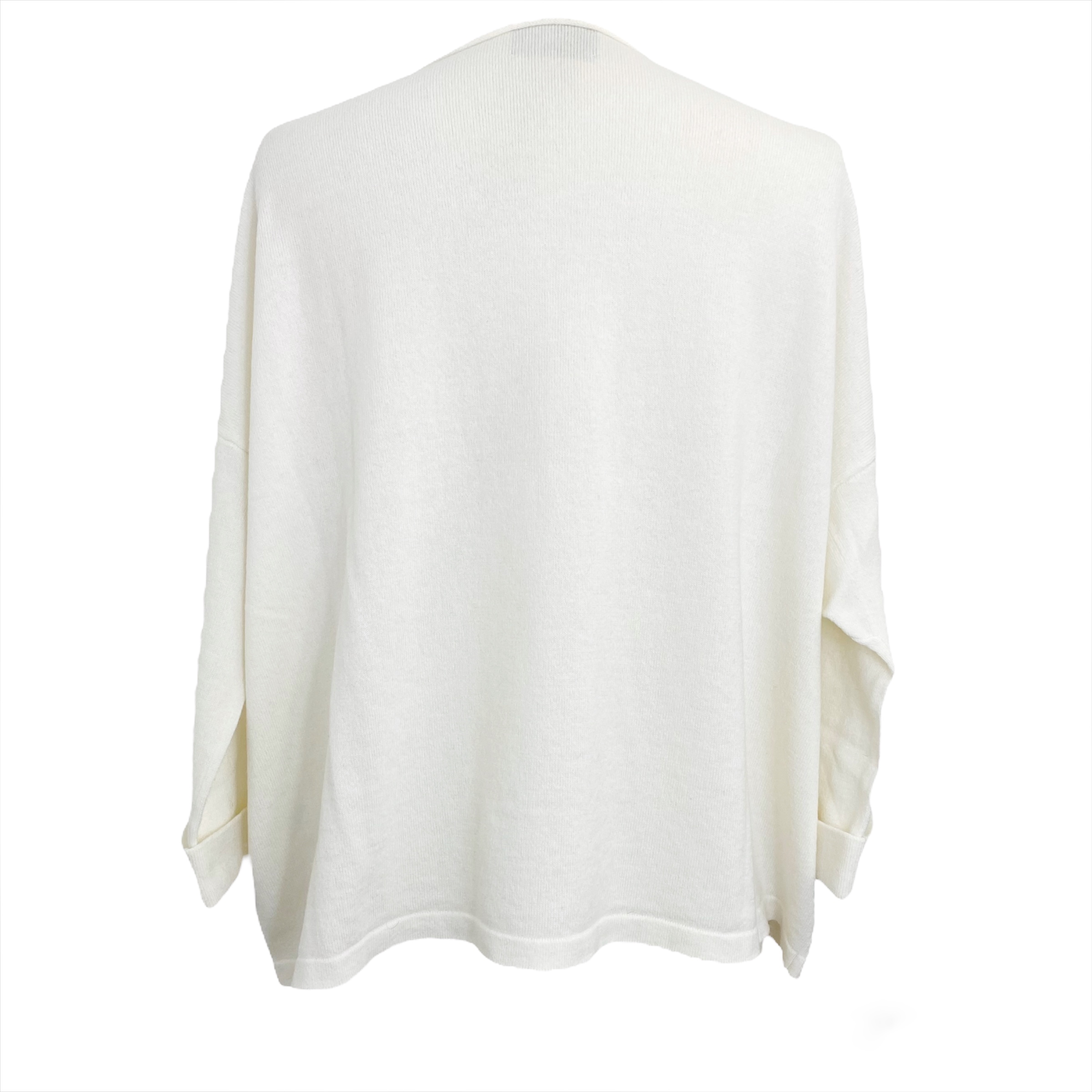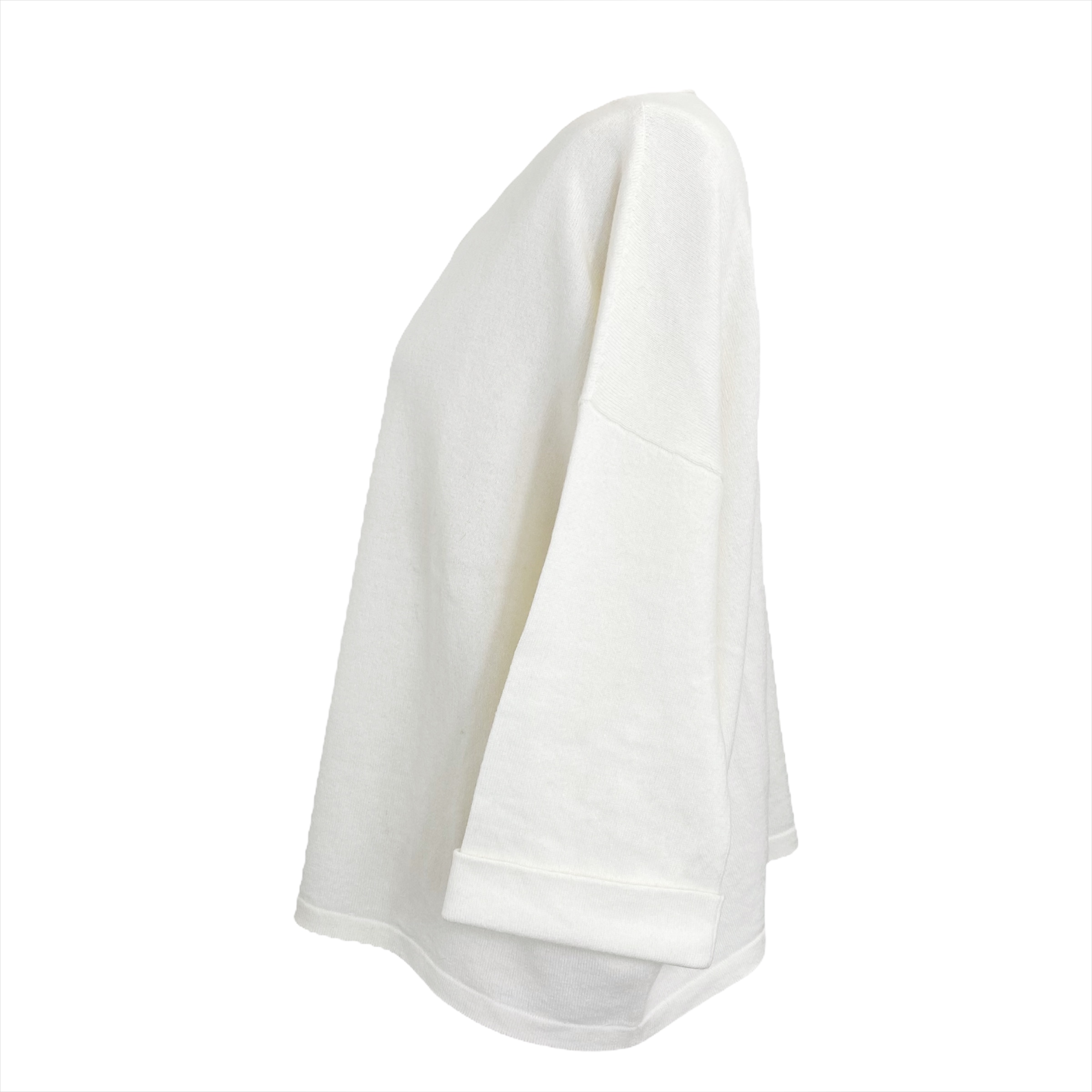Maglia Rossella Blusa di cashmere ad un filo di Nobili Milano latte con scollo a barchetta e maniche a 3/4 con risvolto