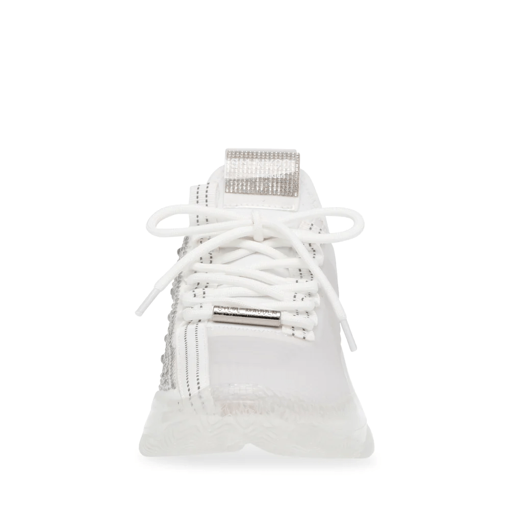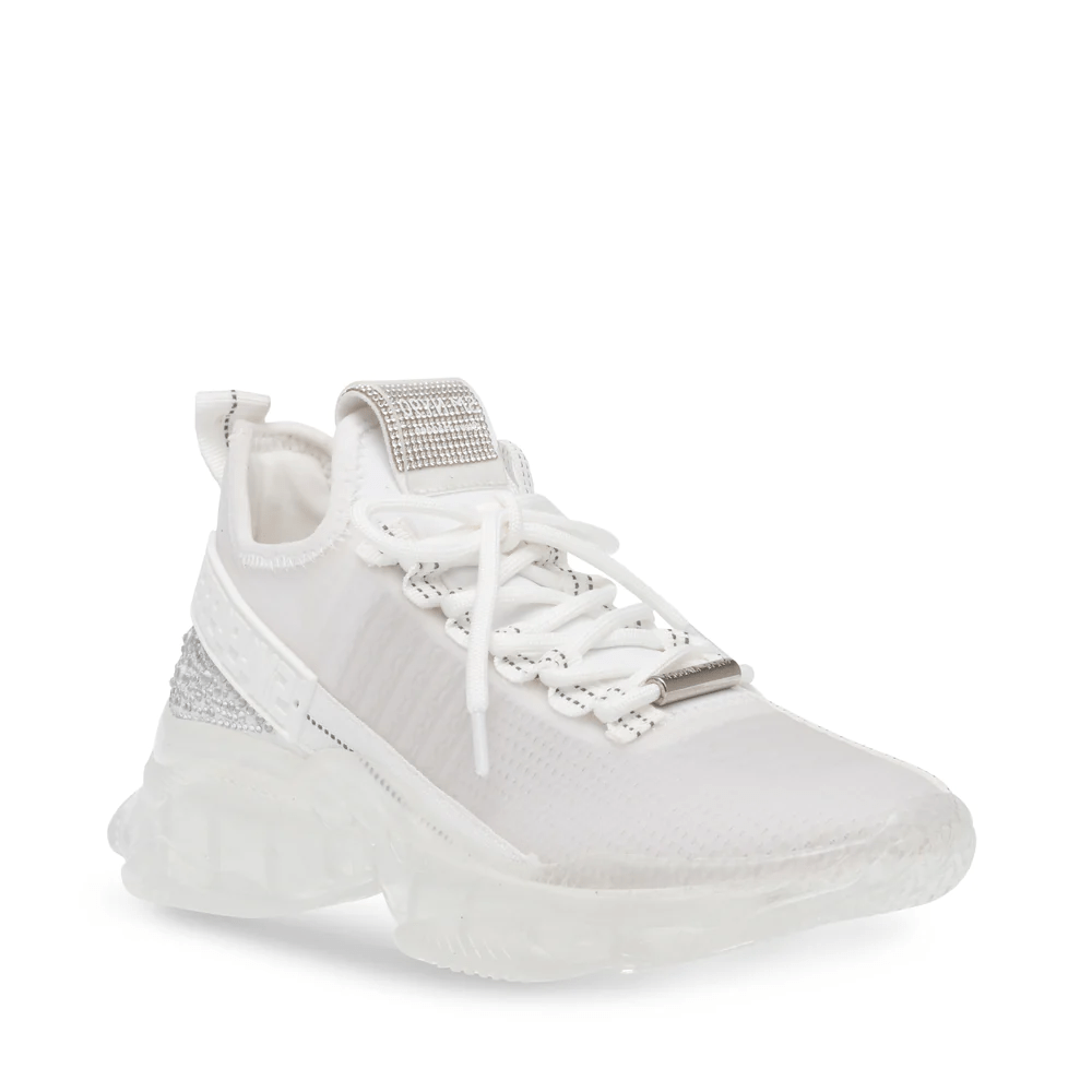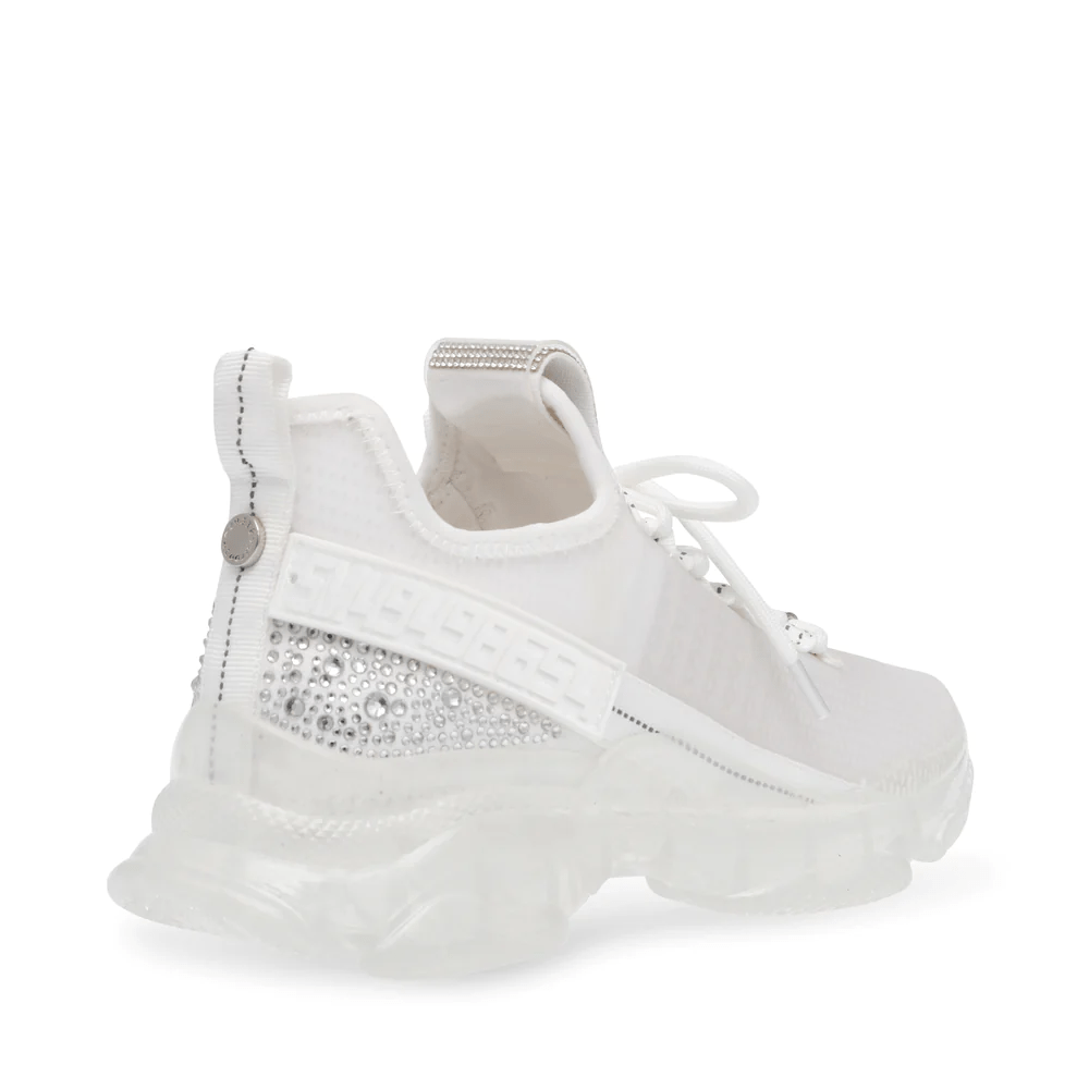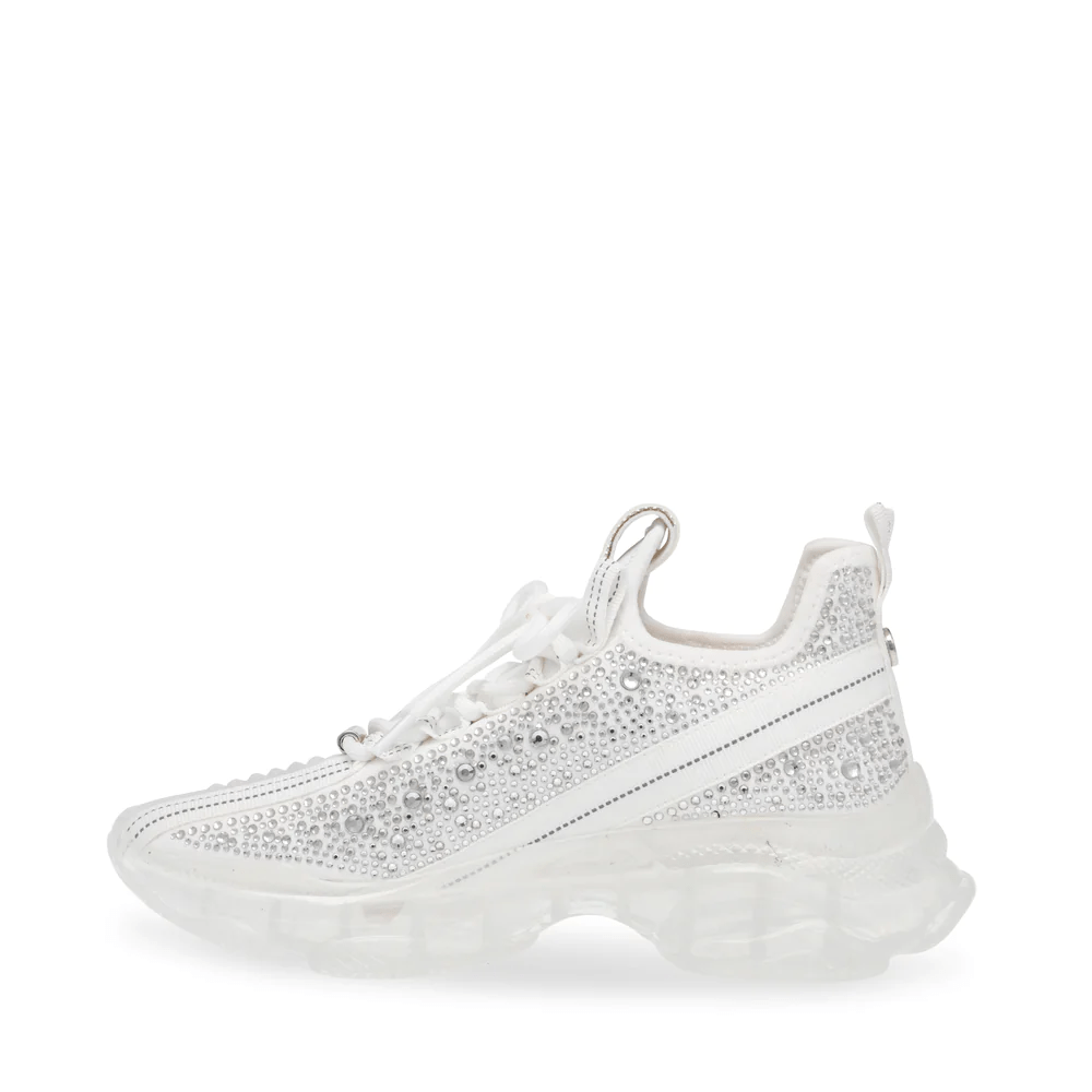 La scarpa ginnica Mystere di Steve Madden ĆØ l’accessorio ideale per unire stile e comfort. Questa scarpa presenta una tomaia in tessuto e gomma bianco decorata da strass, per un look femminile e chic.