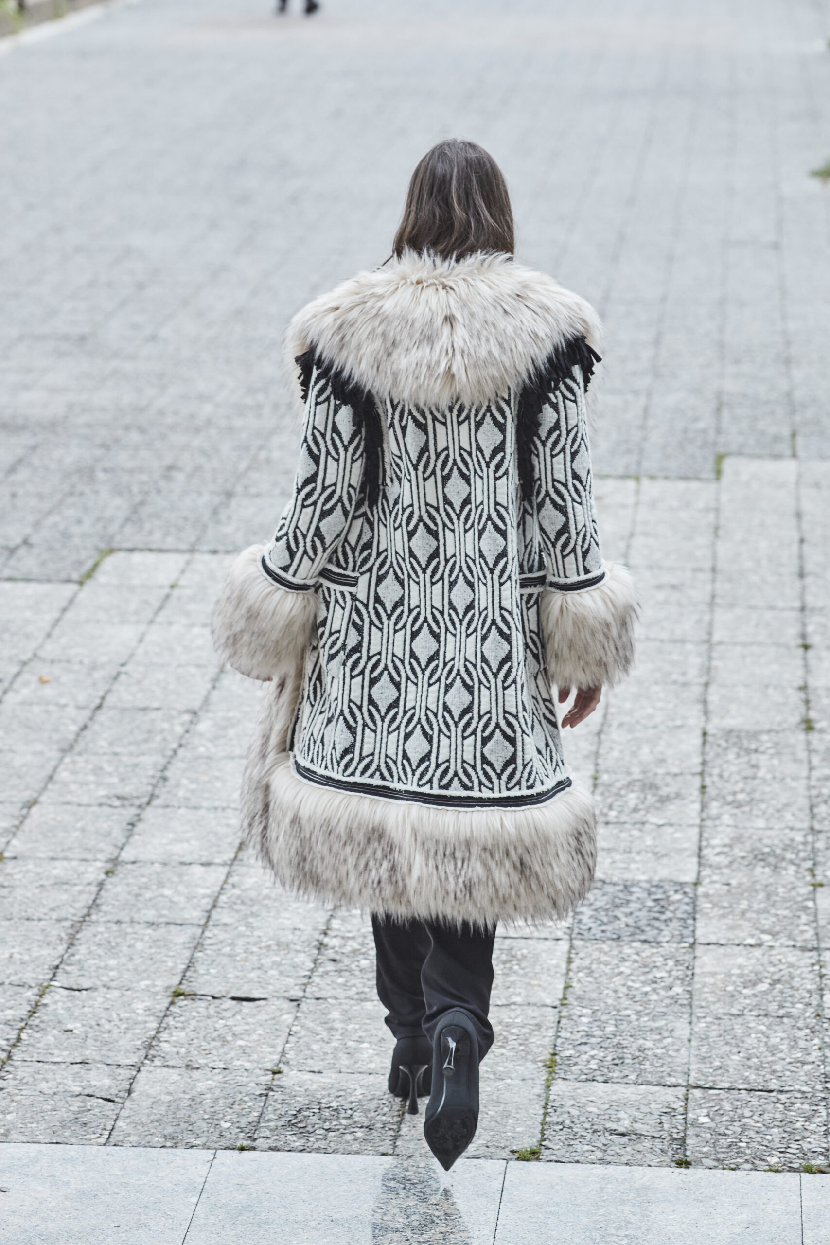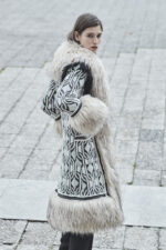 Anche i dettagli sui polsini sono in eco pelliccia anch’essa chiara.