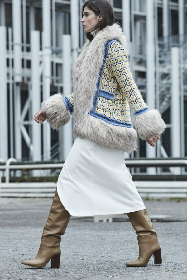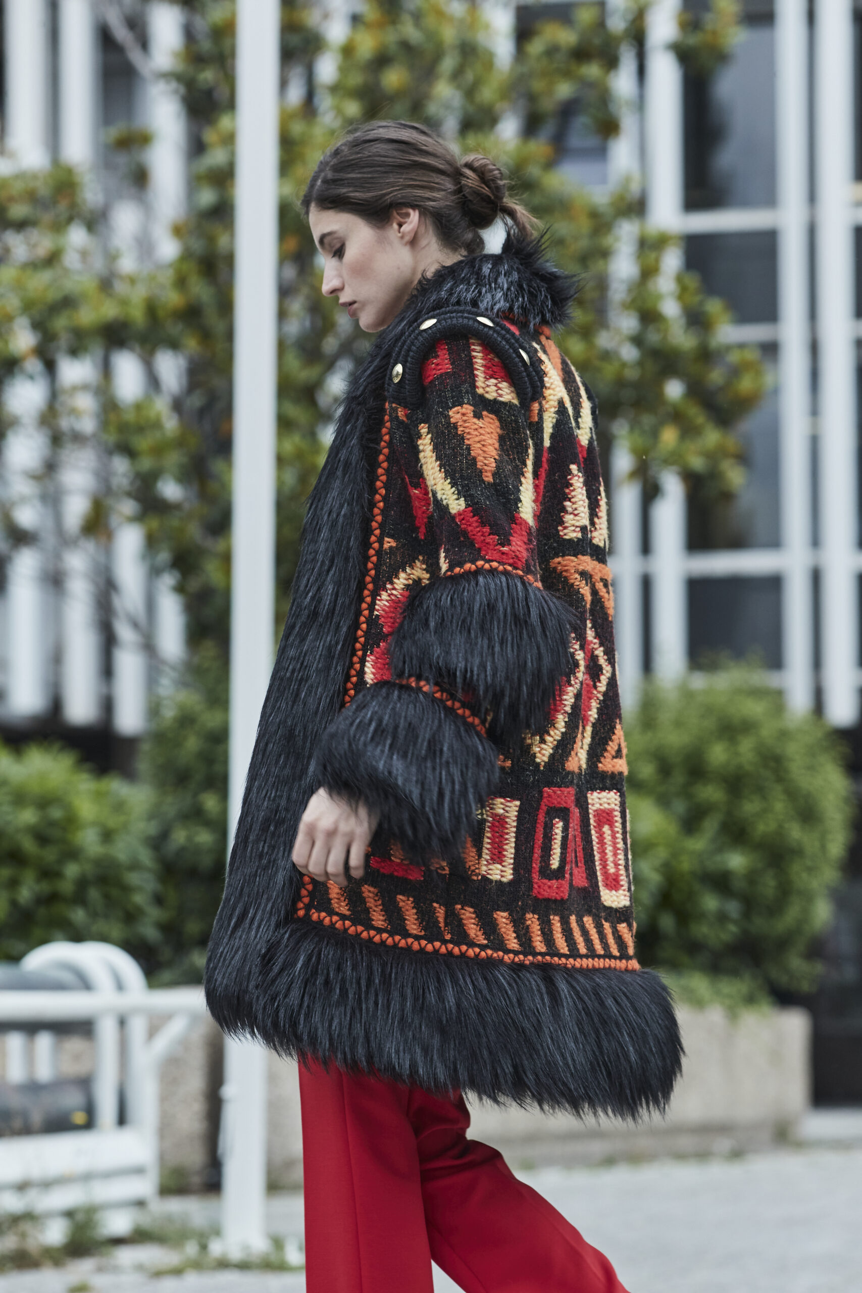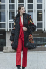 Anche i dettagli sui polsini sono in eco pelliccia anch’essa nera.