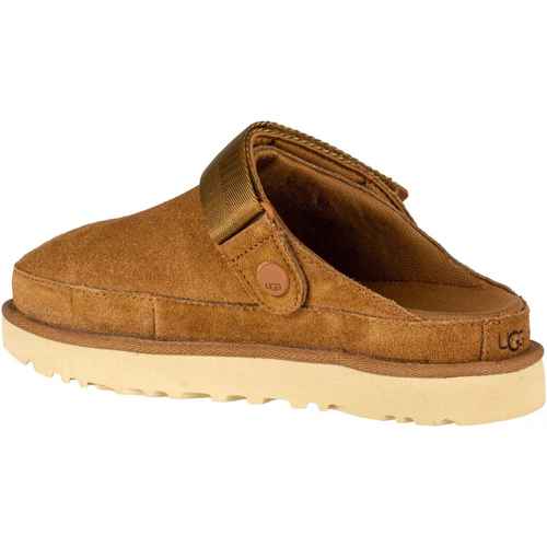 Esplora il comfort e lo stile con le ciabatte UGG, modello Goldenstar Clog Chestnut. Realizzate in pregiato camoscio, queste ciabatte sono il mix perfetto tra comoditĆ e praticitĆ .