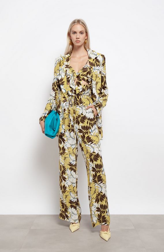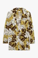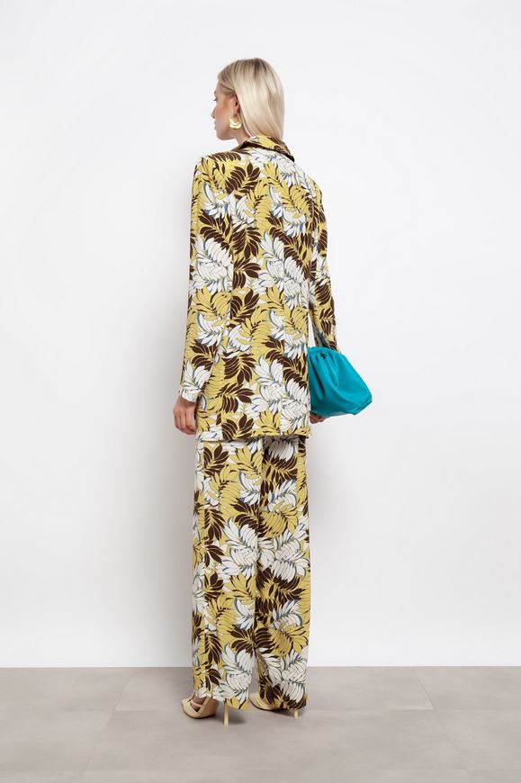 L’oversize blazer di Weili Zheng ĆØ un capo di tendenza che sicuramente catturerĆ  l’attenzione di chiunque ami lo stile unico e audace. Realizzato con cura in una vivace stampa tropicale gialla, questo blazer monopetto ĆØ un vero e proprio punto focale del guardaroba.
