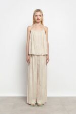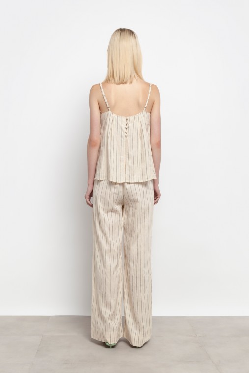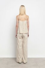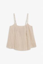 Il colore ecru a righe conferisce al top un tocco di originalitĆ ed eleganza, mentre le spalline regolabili permettono di regolare la vestibilitĆ in base alle proprie esigenze.