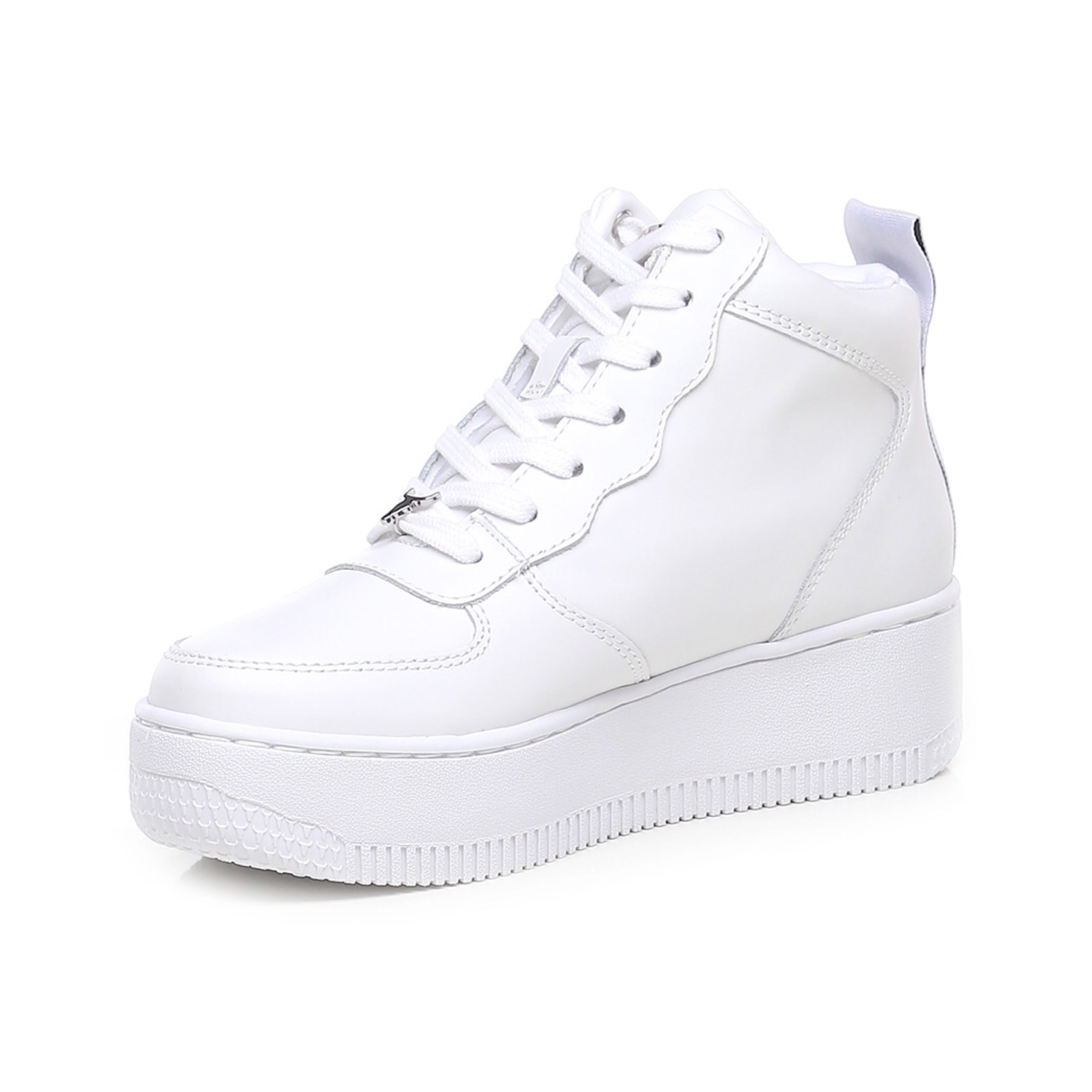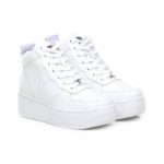Sneaker con la tomaia bianca, dettagli tono su tono e platform bianco