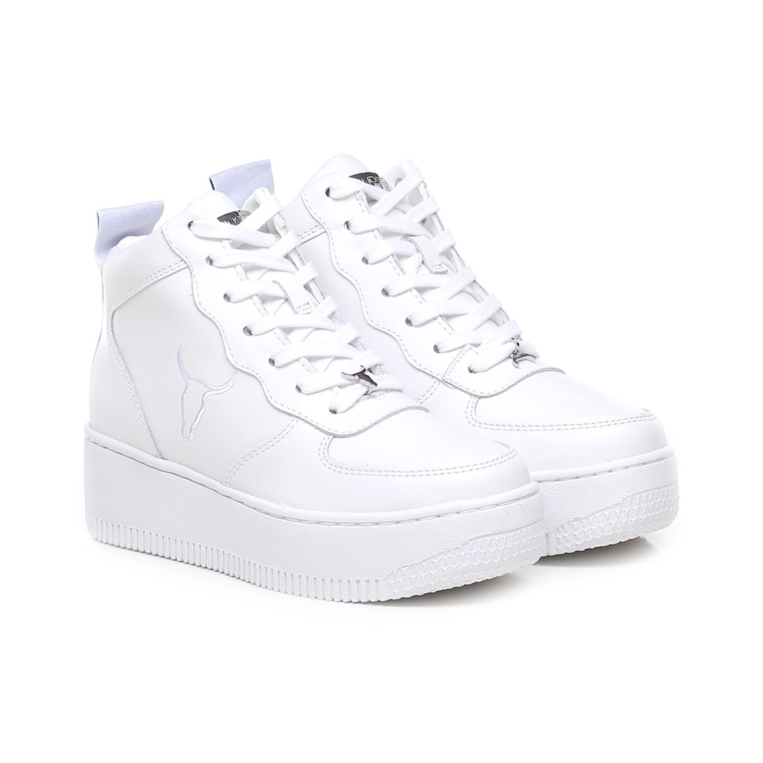Sneaker Raelyn di Windsor Smith in pelle di colore Ā bianca, alta alla caviglia con platform